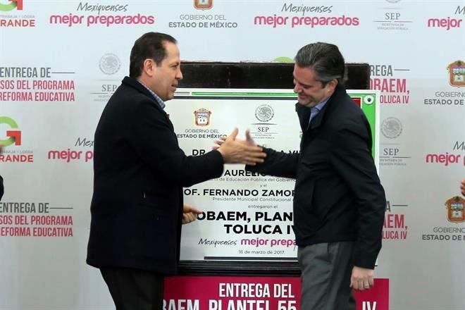 "Hoy, el señor Secretario viene a entregar recursos equivalentes a casi 147 millones de pesos a escuelas de educación especial, jardín de niños, primaria, secundaria", celebró el Gobernador Eruviel Ávila el 16 de marzo en Toluca en compañía del titular de la Secretaría de Educación Pública, Aurelio Nuño.
